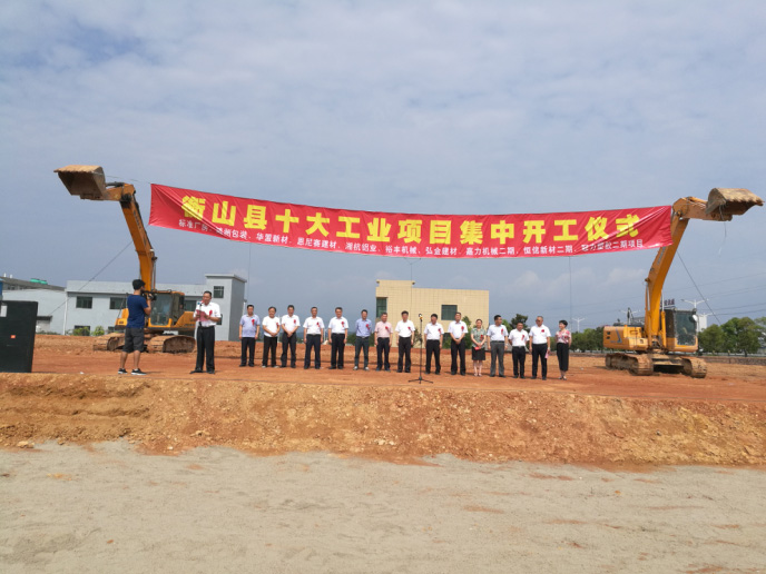 7月13日上午,衡山县十大工业项目集中开工仪式在弘山科技工业园举行。县委书记尹培国出席项目开工仪式并宣布项目开工,县委副书记、县长蒋青代表县“四大家”致辞,县委副书记段晓赛主持仪式。原市政协副主席、弘山工业园总顾问刘国思,市弘湘国有投资(控股)集团公司董事长张力沛等出席项目开工仪式。