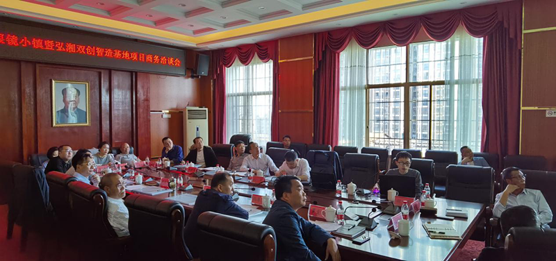 4月27日下午,为加快推进衡阳(国际)眼镜小镇暨弘湘双创智造基地项目建设实施,弘湘国投党委书记、董事长刘军、总经理张雨民率队与珠晖区委书记陈礼洋,区委副书记、区长刘桢干及党政领导进行工作会晤,并在珠晖区常委会议室举行了商务洽谈会。