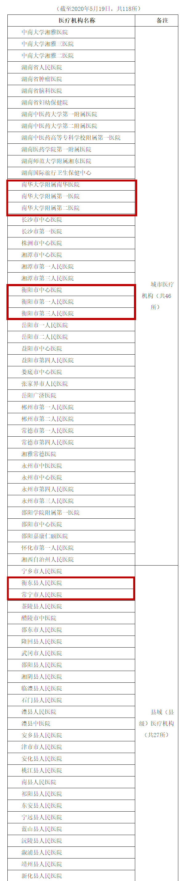 经国家卫生健康委临床检验中心《新冠病毒核酸检测信息平台》查询,湖南开展新冠病毒核酸检测的医疗机构名单5月19日下午公布。其中,衡阳有9家医疗单位可开展新冠病毒核酸检测,他们分别是南华大学附属第一医院、南华大学附属第二医院、南华大学附属南华医院、衡阳市中心医院、衡阳市第一人民医院、衡阳市第三人民医院、衡东县人民医院、常宁市人民医院、衡阳市疾病预防控制中心。具体名单如下: