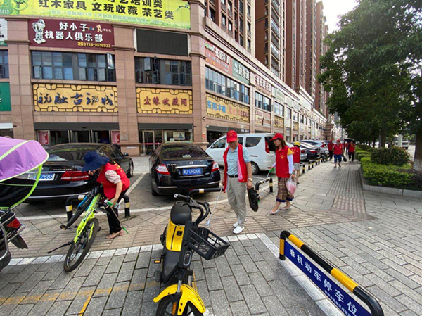 为助力营造整洁有序、文明和谐的创卫环境氛围,大家冒着炎炎烈日,拿着清洁工具沿着祝融路开展卫生大扫除,认真清理路面、绿化带的垃圾。在祝融路与采霞街路口,“衡阳群众”头戴小红帽、手挥小红旗,开展道路交通安全宣传,劝阻行人违反交通信号灯、过马路不走人行横道,非机动车逆向行驶等不文明行为。