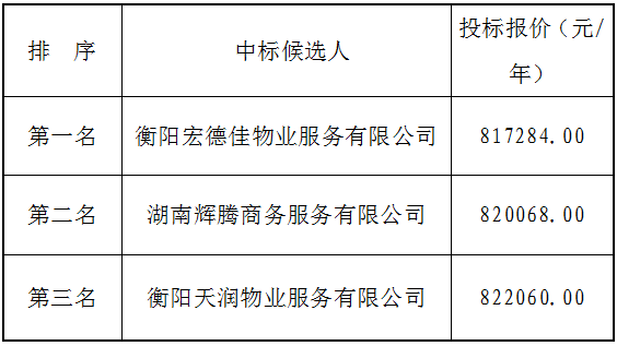 衡阳弘湘国有投资(控股)集团有限公司院内物业服务采购项目中标候选人公示