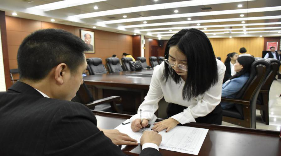 为发挥人才保障支撑作用,以开放、包容的选人、用人理念,广纳贤才,创新人才选聘机制,打造一支思想政治成熟,专业知识精湛,具有开拓创新精神的管理干部队伍,弘湘国投特别组织了此次公开竞聘活动。竞聘涉及15个正职岗位和23个副职岗位。经过前期充分动员,各部门职工积极响应,踊跃报名,共有61人通过资格审查,走上竞岗舞台接受组织选拔。为坚持“公平、公正、公开、择优”的原则,竞聘严格按照相关规程开展,由公司纪委全程监督,各个环节均在摄像镜头下进行。竞聘演讲开始前,所有竞聘者集中在候场室封闭管理,依次随机抽签决定演讲顺序并上交手机等电子设备。候场室气氛紧张又热烈,竞聘者们各个精神饱满,大家反复朗读背诵自己的演讲稿,互相交流经验、加油打气,力求给评委展现最佳状态。