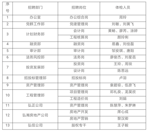 衡阳弘湘国有投资(控股)集团有限公司2020年公开招聘员工体检事项公告