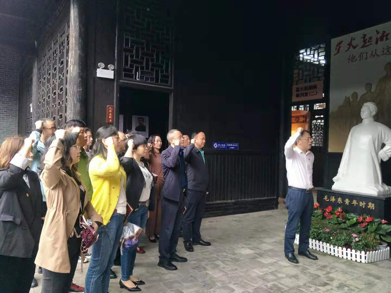 通过参观和聆听解说员的讲解,党员们纷纷被湘南学联弘扬的革命精神深深地震撼和鼓舞。面对鲜红的党旗,全体党员在董事长刘军的带领下,庄严地举起右拳,用铿锵有力的声音重温入党誓词,在铮铮誓言中感悟共产党人的初心和使命、责任与担当。