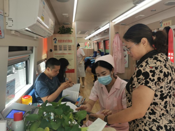 早上7点30分,献血车缓缓驶入弘湘国投办公区,无偿献血拉开了序幕,员工们陆续到献血车登记排队,有条不紊地登记信息、血液化验检测、采血。在这些献血员工当中,他们有的是数次参加无偿献血的老同志,也有刚参加工作不久的新员工,其中不乏巾帼不让须眉的女同志。