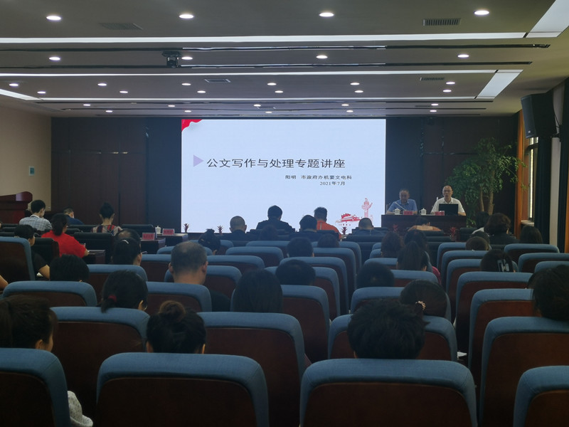 此次培训特邀市政府办机要文电科科长阳明进行专题授课。他以工作需求为导向,用通俗易懂的语言围绕公文释义、公文种类、公文格式、行文规则、公文拟制、公文办理等六个方面进行了系统、详细地讲解。