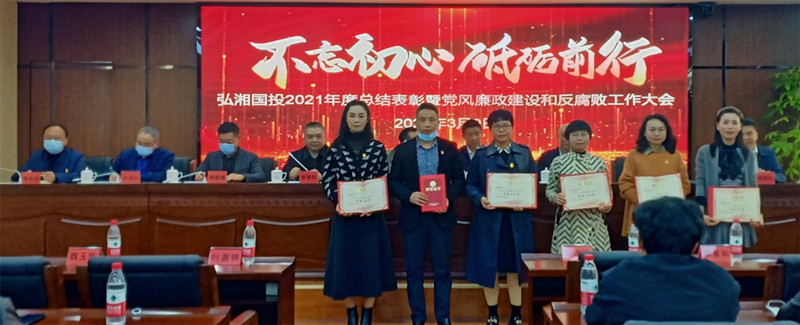 3月9日,弘湘国投召开2021年度总结表彰暨党风廉政建设和反腐败工