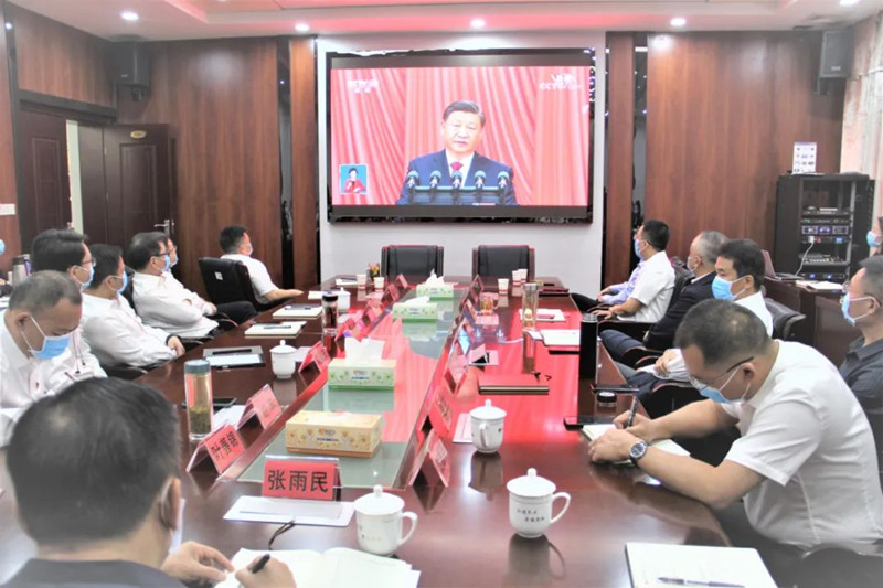 在观看开幕盛况过程中,大家聚精会神地观看现场直播,部分党员干部边听边记,报告中讲述的新思想、新观点引起了大家的强烈共鸣。在集体学习讨论环节,弘湘国投党委班子成员热议学习心得体会。总经理叶善锦认为,习近平总书记向大会所作的报告,把握历史大势,着眼长远发展,回应时代需求,高屋建瓴,催人奋进。学习习近平总书记报告,贵在深学细悟笃行,空谈误“司”、实干兴“司”,需要团结奋进、凝神聚力,努力改革、大胆创新,跑出公司高质量发展“加速度”。