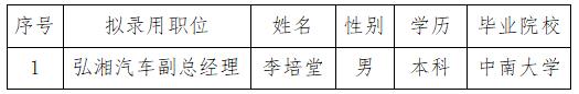 衡阳弘湘汽车科技有限公司拟录用人员公示公告