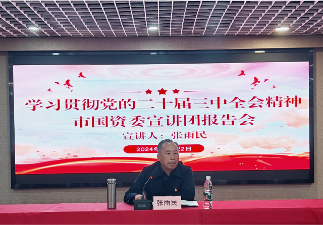 10月22日,衡阳市国有资产投资控股集团有限公司党委书记、董事长张雨民作为市国资委宣讲团成员在金翼公司召开学习贯彻党的二十届三中全会精神宣讲报告会。
