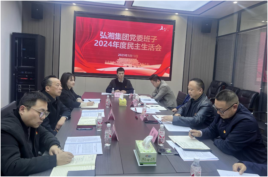 按照集团党委部署和要求,3月13日下午,弘湘集团党委班子集中安排半天时间召开2024年度民主生活会。围绕此次民主生活会主题,对照党章党规党纪,聚焦“四个带头”,深入检视查摆问题,深刻剖析典型案例,严肃开展批评与自我批评,明确努力方向和整改举措,以实际行动推动弘湘集团各项工作再上新台阶。 张雨民同志代表国投集团出席并作点评讲话,弘湘集团党委书记、总经理蒋永忠主持会议并作表态发言,国投集团纪检监察室、党群工作部负责人一并参会。