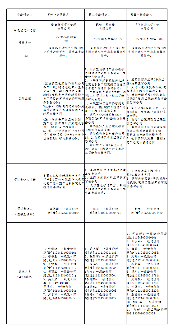 动力电池标准厂房及公共服务配套设施建设项目一期项目造价咨询审核(复审)服务单位内部比选中选候选人公示