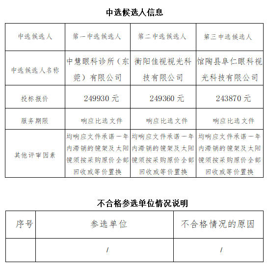 衡阳(国际)眼镜小镇视光检测中心镜架合同太阳镜采购公开比选中选候选人公示